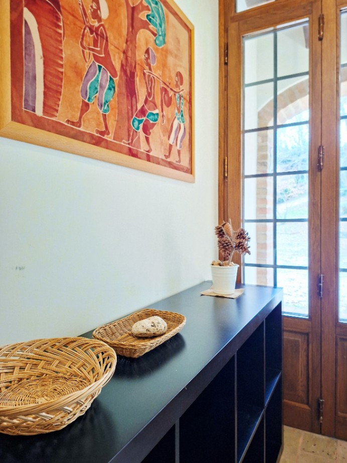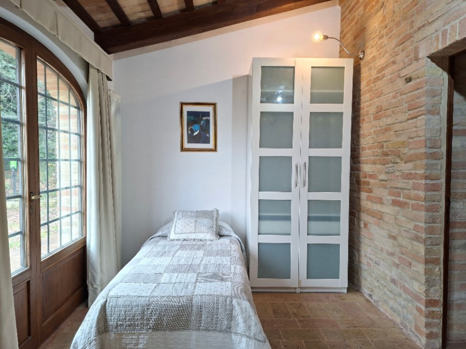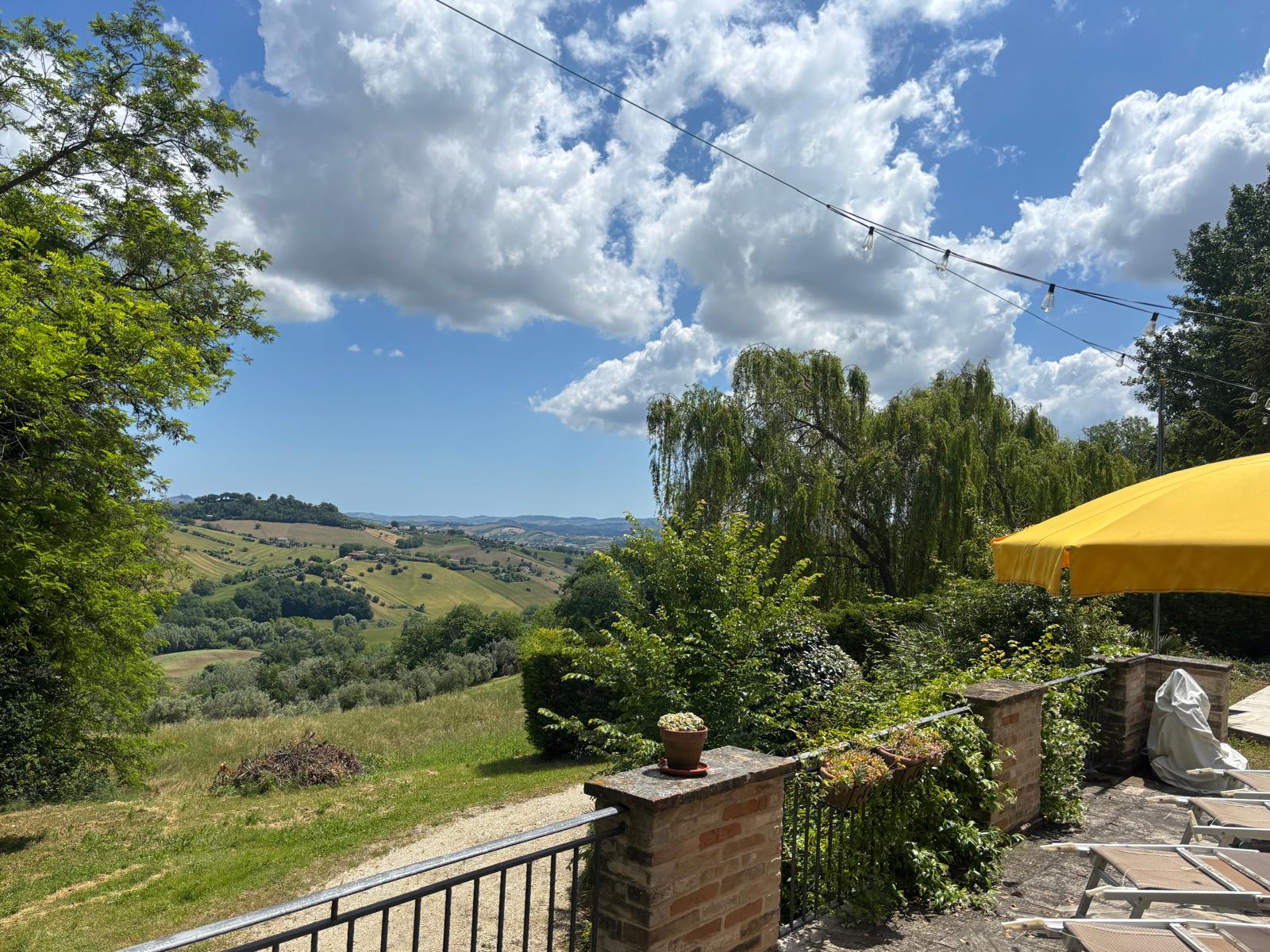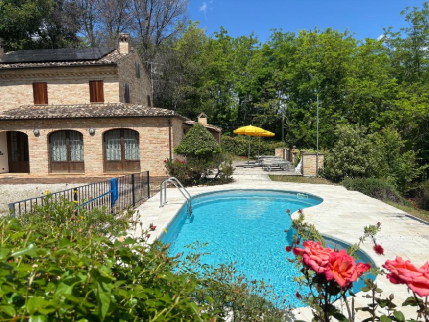 È una residenza ottocentesca tipica della campagna marchigiana, finemente restaurata, con un ampio parco privato e una grande terrazza che si affaccia verso la valle con un panorama che arriva fino al mare.