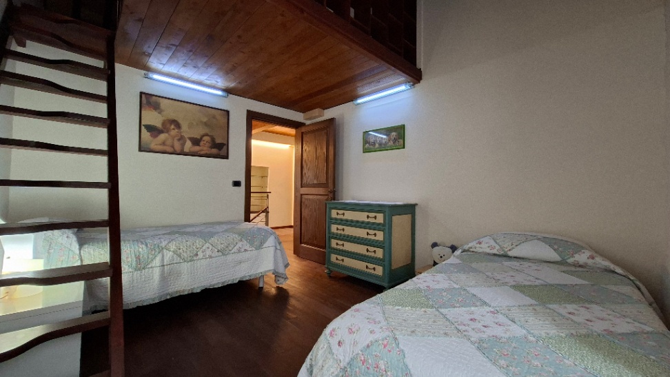 Può ospitare fino a 9 persone: al primo piano ha una camera matrimoniale ed una camera per 4 persone in letti singoli, al piano terra c’è una camera con un letto matrimoniale ed un letto singolo. Tutte le camere da letto sono con aria condizionata.